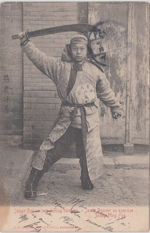 Vintage postcard showing a “Young Boxer” with sword. Early 20th century. Source: Authors personal collection.